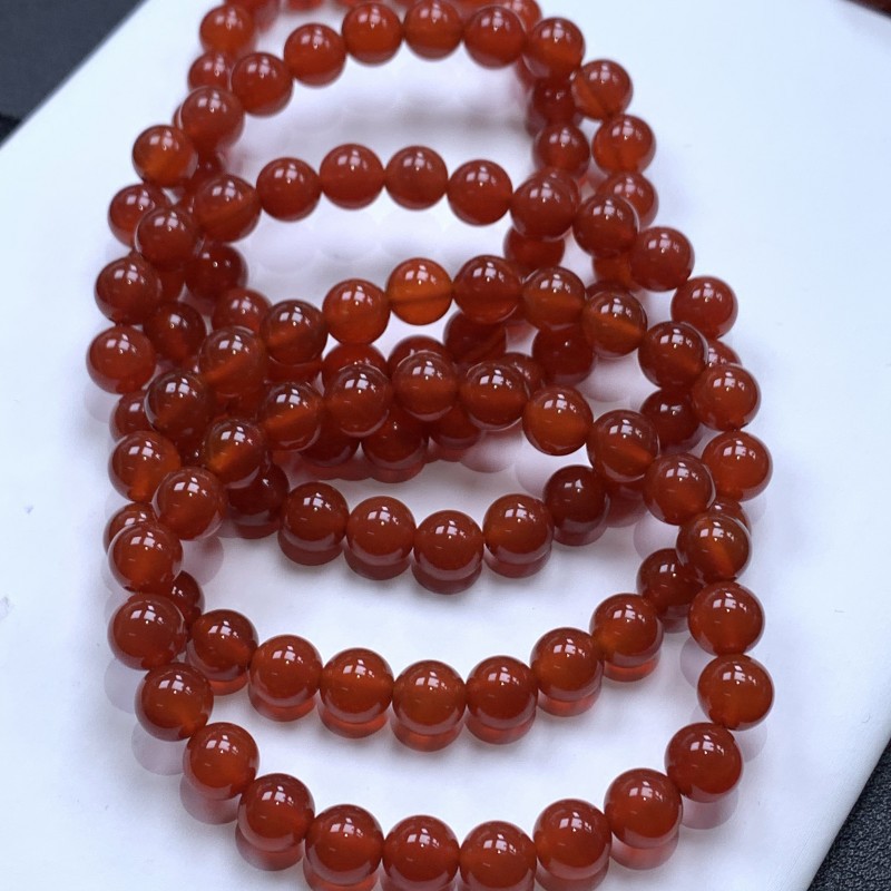 爆款天然A货红玛瑙手链DIY百搭艳红色玛瑙玉髓散珠成品批发