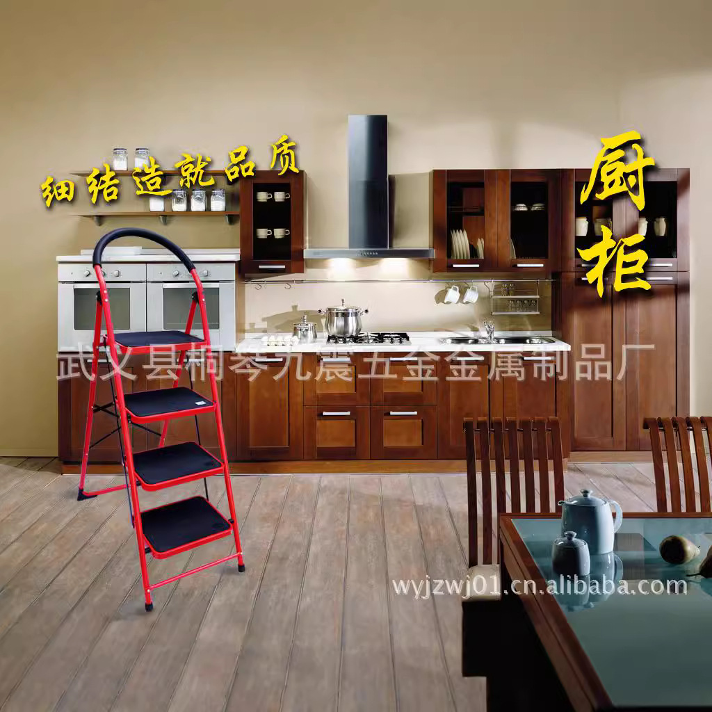 设计合理、造型美观、不锈不腐、坚固耐用。各类梯子均表面膜防护处理,亮白光泽,收放方便,用途广泛,是您家庭小型简易工具,可以用于换灯泡\吊柜使用\登阁楼\搞卫生等,是广大家庭\宾馆\企事业单位\学校的登高必备工具。