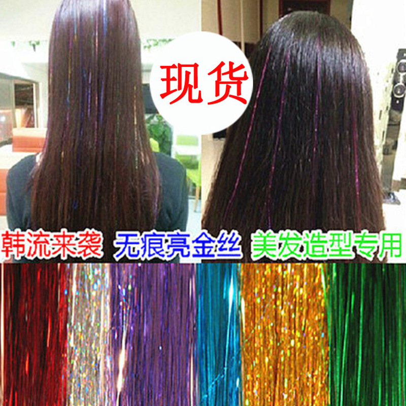 彩色 镭射 炫彩金丝 舞台妆美发店亮丝无痕接发片 七彩金丝假发片