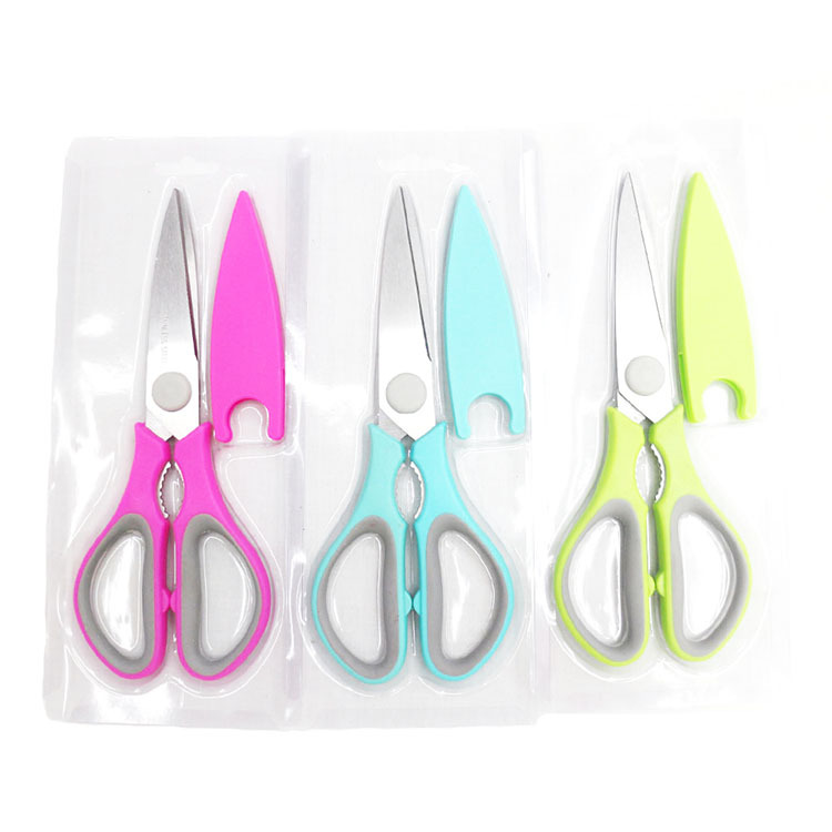 剪刀多种功能,备有开瓶器、核桃夹、铁线剪孔等功能。