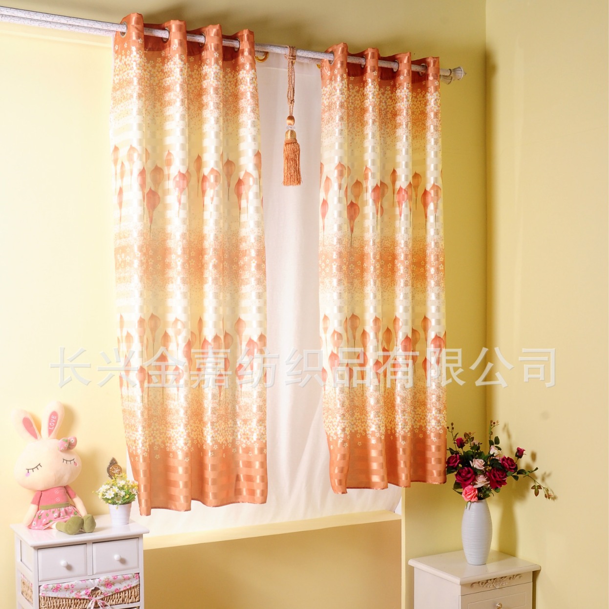 - 工艺:3cm阴阳条遮光窗帘,此款面料为喷水机器织造而 成