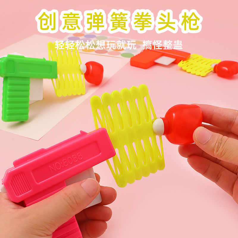【产品说明】一勾扳手小拳头就会弹出去哦!还可以让孩子给你用拳头枪的小拳头捶背哦!像变魔术一样孩子很喜欢的!!逗你开心没有商量!!很可爱的小玩具!!孩子开心,大人快乐!!! 3种颜色混批混发!
