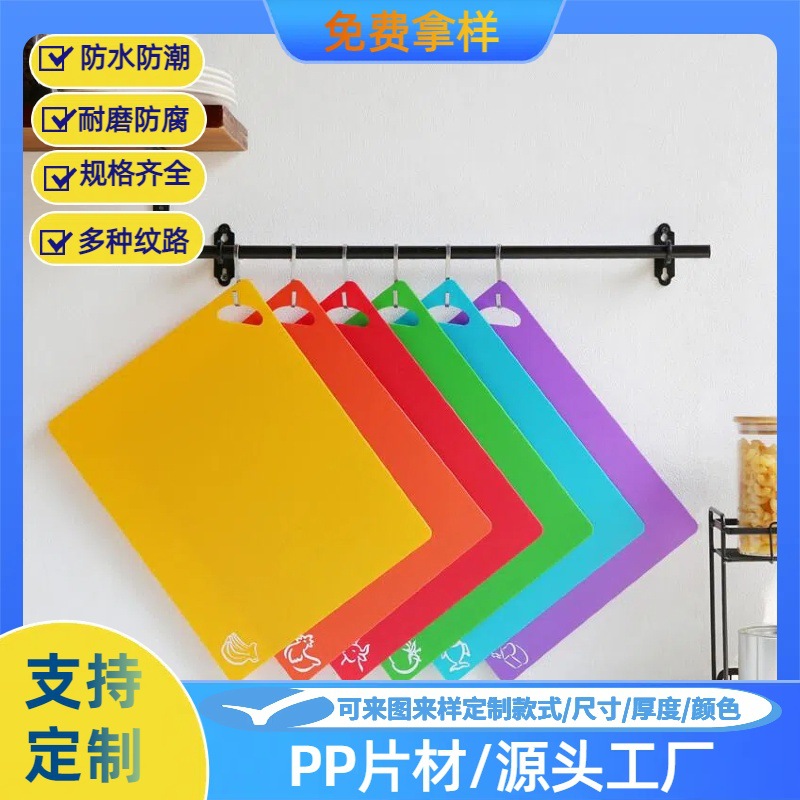 PP:英文名称 Polypropylene ,它是一种高密度、无侧链、高结晶的线性聚合物,具有优良的综合性能。用于电子垫片,办公文具,食品包装盒,玩具包装等如包装盒,鞋盒,礼品盒,文件袋,文件夹,隔页片,笔记本封面,写字板,挂历餐垫,杯垫,背光板,遮光板,笔盒,资料册,分页卡,书托,挂历,台历,广告扇,鼠标垫切菜板等贴墙用的墙纸,地面垫板,灯罩,电子隔层被,服装划线板,服装挂牌,鞋样划线板,超市挂条,行李箱挂牌,路标牌,相框,包装片,垫板,墙面板,置物架垫板,餐桌垫板,灯罩,风筝片,背景拍摄片,遮阳板,塑料隔板,地面垫板,装饰广告垫板,遮光板,鞋架板,鱼缸隔板等