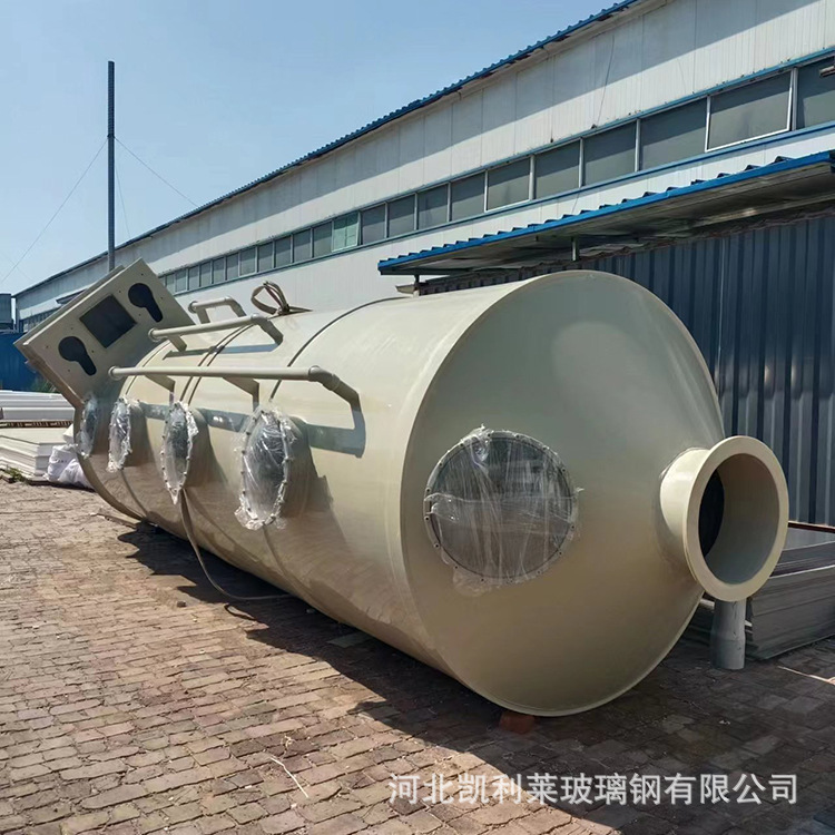 玻璃钢净化塔的分类为:湿式净化塔及干式吸附塔。湿式净化塔分为 :填料塔,洗涤塔,脱硫塔,旋流板塔,泡罩塔,吹脱塔,吸收塔;干式吸附塔分为:活性炭吸附塔,SDG干法酸性废气吸附塔。适用于处理的主要有害气体为:硫酸雾(H2SO4)、氯化氢(HCL)气体及氟化氢(HF)气体、铬酸雾(CrO3)、氰氢酸气体(HCN)、硫化氢(H2S)、氨气(NH3)、氮氧化物(NOx)、酸、苯等废气 。根据不同的废气采用的方式也不相同,废气采用干法吸附效果佳,无机酸雾采用湿法净化,也可采用湿法+干法净化的方法效果会很好。