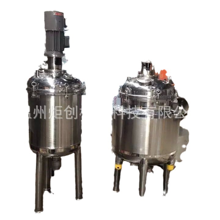 反应釜由釜体、釜盖、夹套、搅拌器、传动装置、轴封装置、支承等组成。搅拌形式一般有锚式、桨式、涡轮式、推进式或框式等,搅拌装置在高径比较大时,可用多层搅拌桨叶,也可根据用户的要求任意选配。并在釜壁外设置夹套,或在器内设置换热面,也可通过外循环进行换热。加热方式有电加热、热水加热、导热油循环加热、远红外加热、外(内)盘管加热等,冷却方式为夹套冷却和釜内盘管冷却,搅拌桨叶的形式等。支承座有支承式或耳式支座等。转速超过160转以上宜使用齿轮减速机.开孔数量、规格或其它要求可根据用户要求设计、制作。