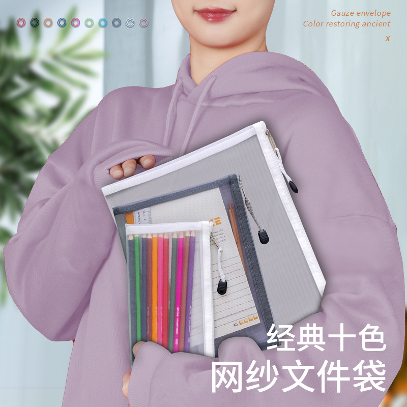 A4/A5 폭발 휴대용 파일 가방 투명 메쉬 연필 가방 화장품 가방 대용량 보관 가방 학생 지퍼 가방