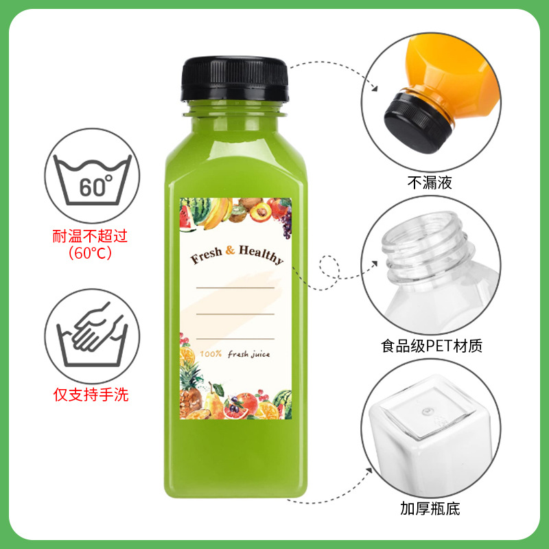 400ml(13oz)方形果汁瓶,装箱数量:270套/箱,箱规:67.5*47.5*51.5cm;