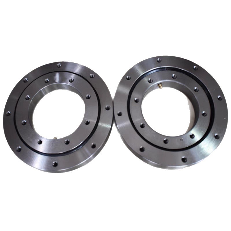 由两个座圈组成为外圈 内圈结构紧密、重量轻(为轻型回转支承)、钢球与圆弧滚道四点接触能同时承受轴向力径向力和倾覆力矩。