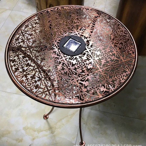 铁艺镂空古典桌子,兼有太阳能灯照明功能