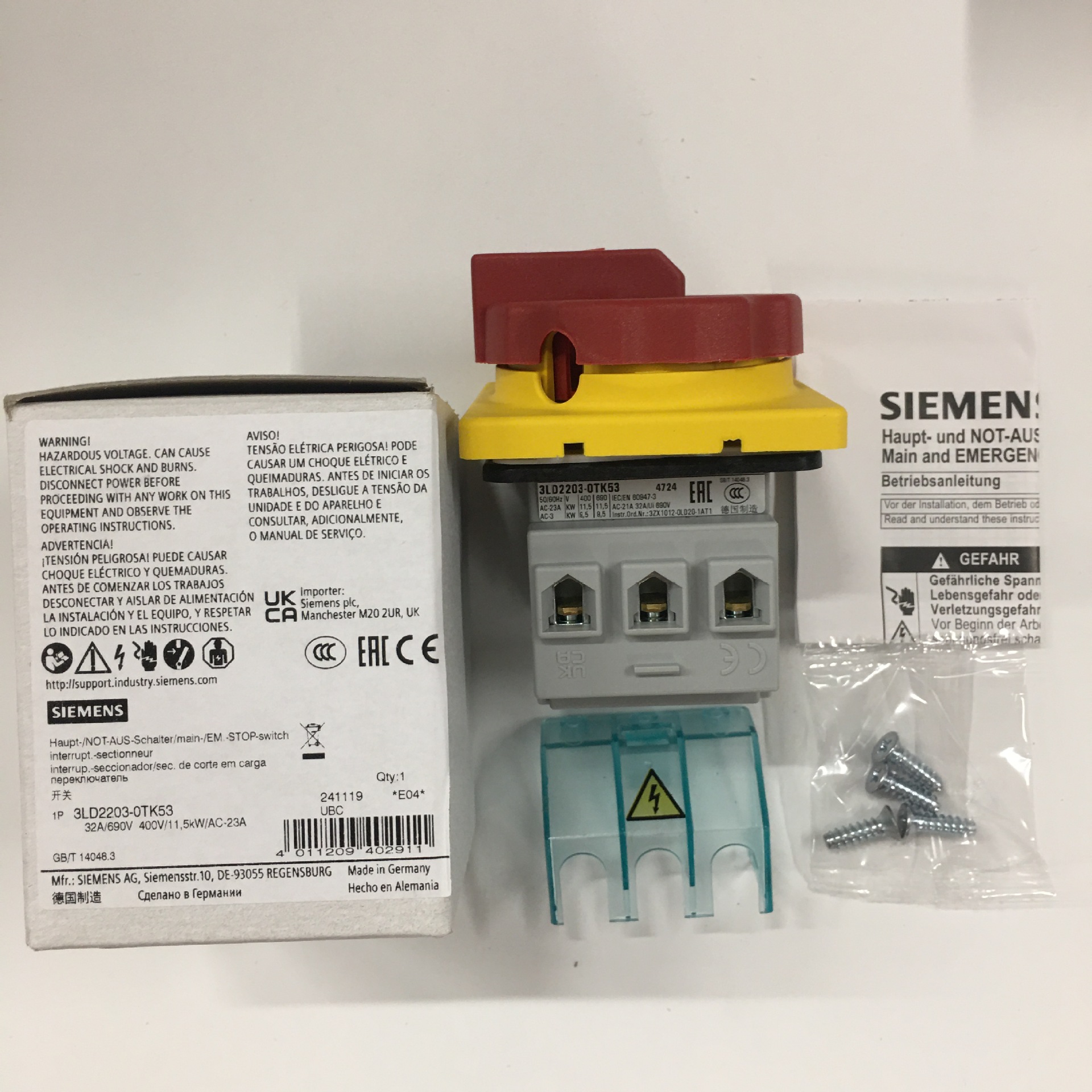 브랜드 지멘스/지멘스 모델 3LD2504-0TK53 제품 인증 CE 3C 인증서 번호 2023010201520953 3C 정격 전압 범위 440V 이상 국경 간 수출의 원천이 독점적인지 여부 아니 스위치 유형 부하 스위치 -