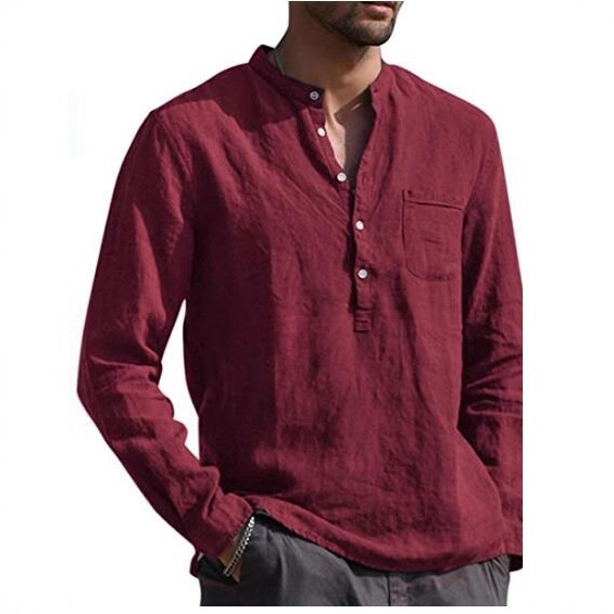 2020速卖通wish亚马逊爆款 热卖男士长袖V领休闲沙滩亚麻衬衫男装