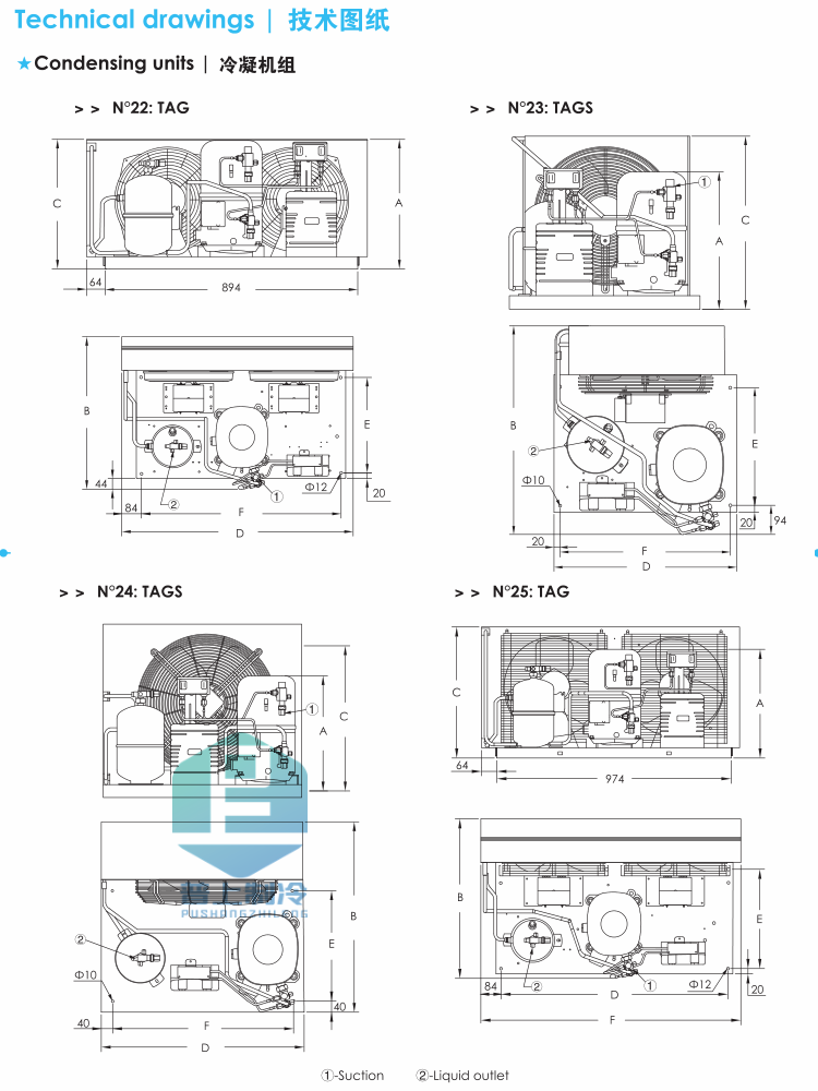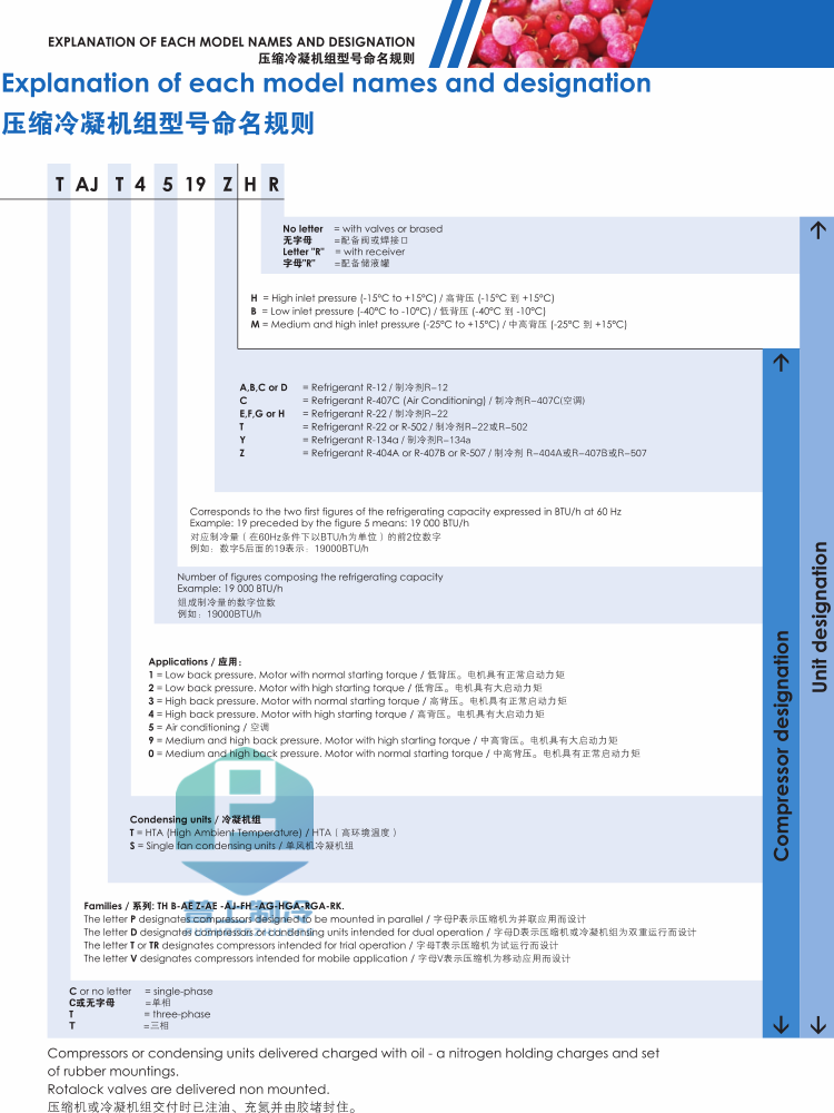 TFH2480ZBR机组包含:储液器 油分离器 气液分离器 干燥过滤器 视液镜 冷媒电磁阀 高低压压力表