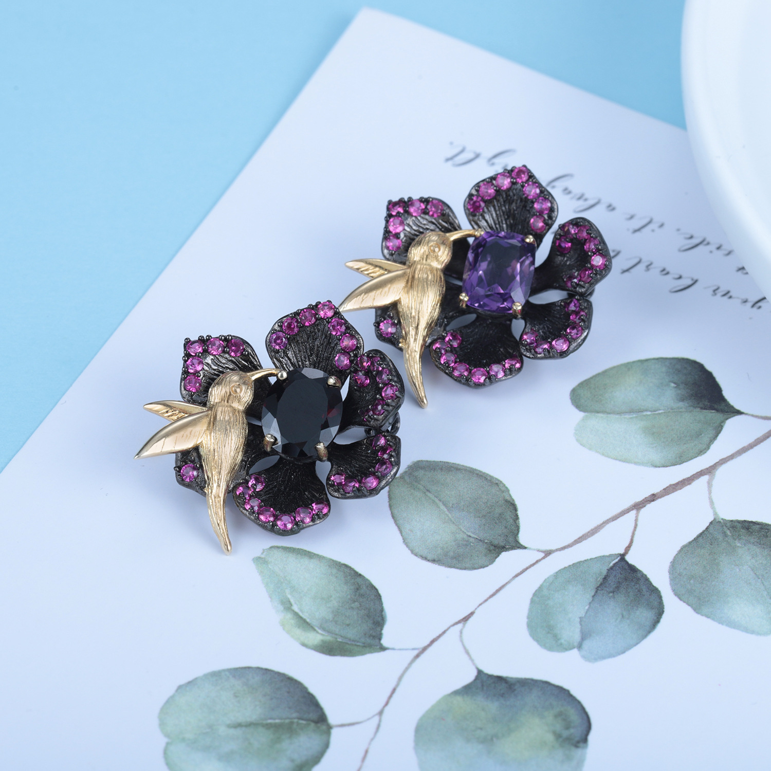 珠宝型 时尚服饰珠宝套装 电镀 镀金 起批量 可混批 可定制 重量 LOGO 根据客户的要求 主要材料 925纯银 主石 天然紫水晶、天然石榴石 使用人群 女士 应用领域 周年纪念,订婚,礼物,派对,婚礼,生日