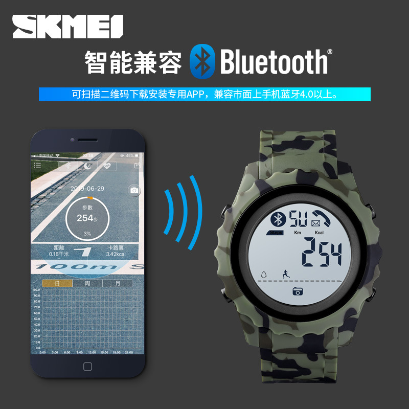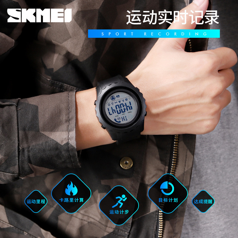 品牌 SKMEI(时刻美) 型号 1626 机芯 智能机芯配日本电池 功能 显示星期,闹钟,夜光,计步,运动里程,卡路里计算,跑秒计时,应用推送,提醒功能,