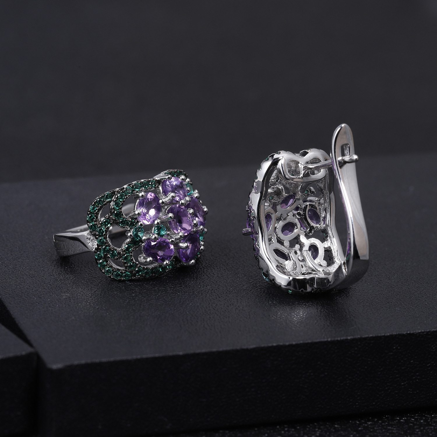 珠宝型 时尚服饰珠宝套装 电镀 镀金 起批量 可混批 可定制 开发时间 2019年 LOGO 根据客户的要求 主要材料 925纯银 主石 紫水晶 使用人群 女士 应用领域 周年纪念,订婚,礼物,派对,婚礼,生日