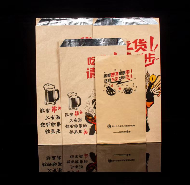 인기있는 바베큐 꼬치 튀김 은박지 테이크아웃 단열 일회용 포장 기름 방지 종이 봉투 22*12 공장 직접 판매
