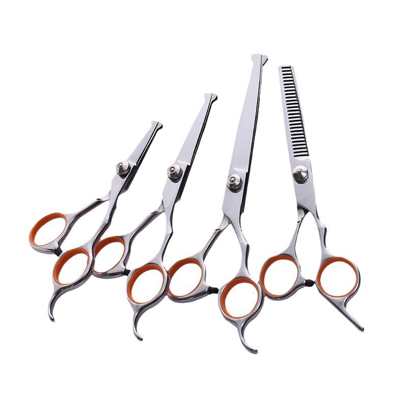 제조업체 핫세일 애완동물 미용 스테인리스 가위 세트 강아지 전용 둥근 머리 안전 가위 평평한 이빨 가위