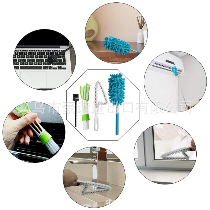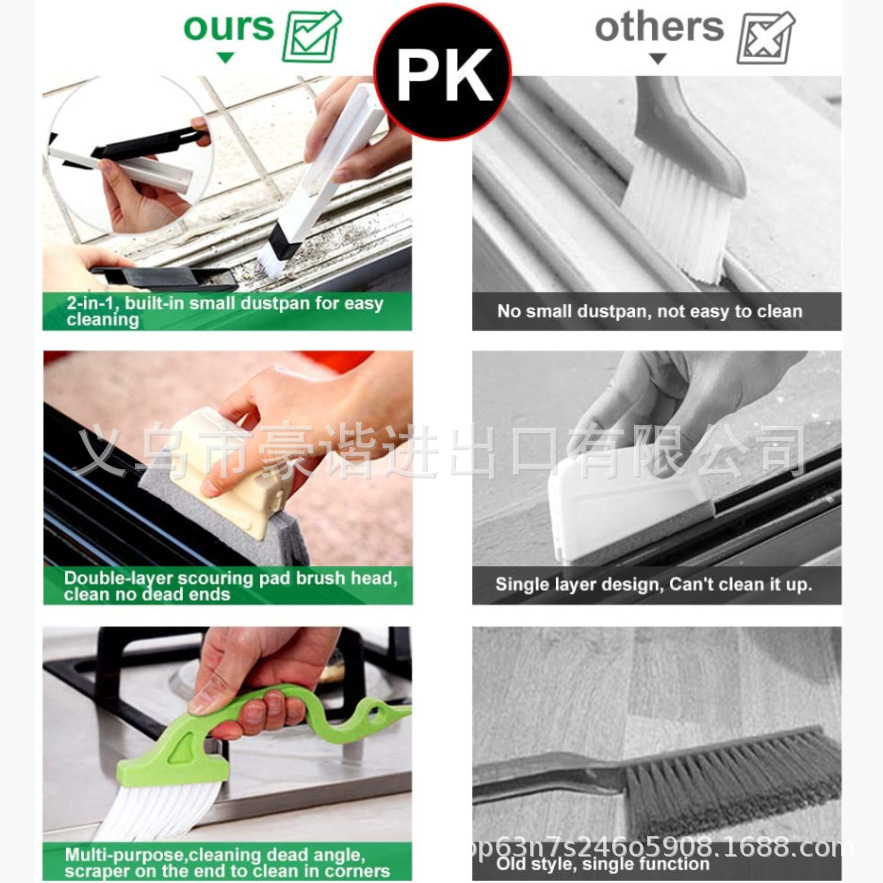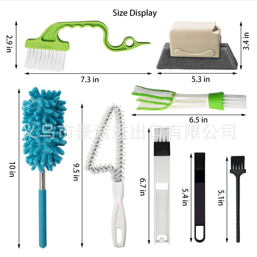 [多功能刷]:用这些工具清洁窗槽、百叶窗、汽车通风口、滑动门、淋浴门轨道、电脑键盘、燃气灶、水槽、水龙头、马桶开关、浴缸等。