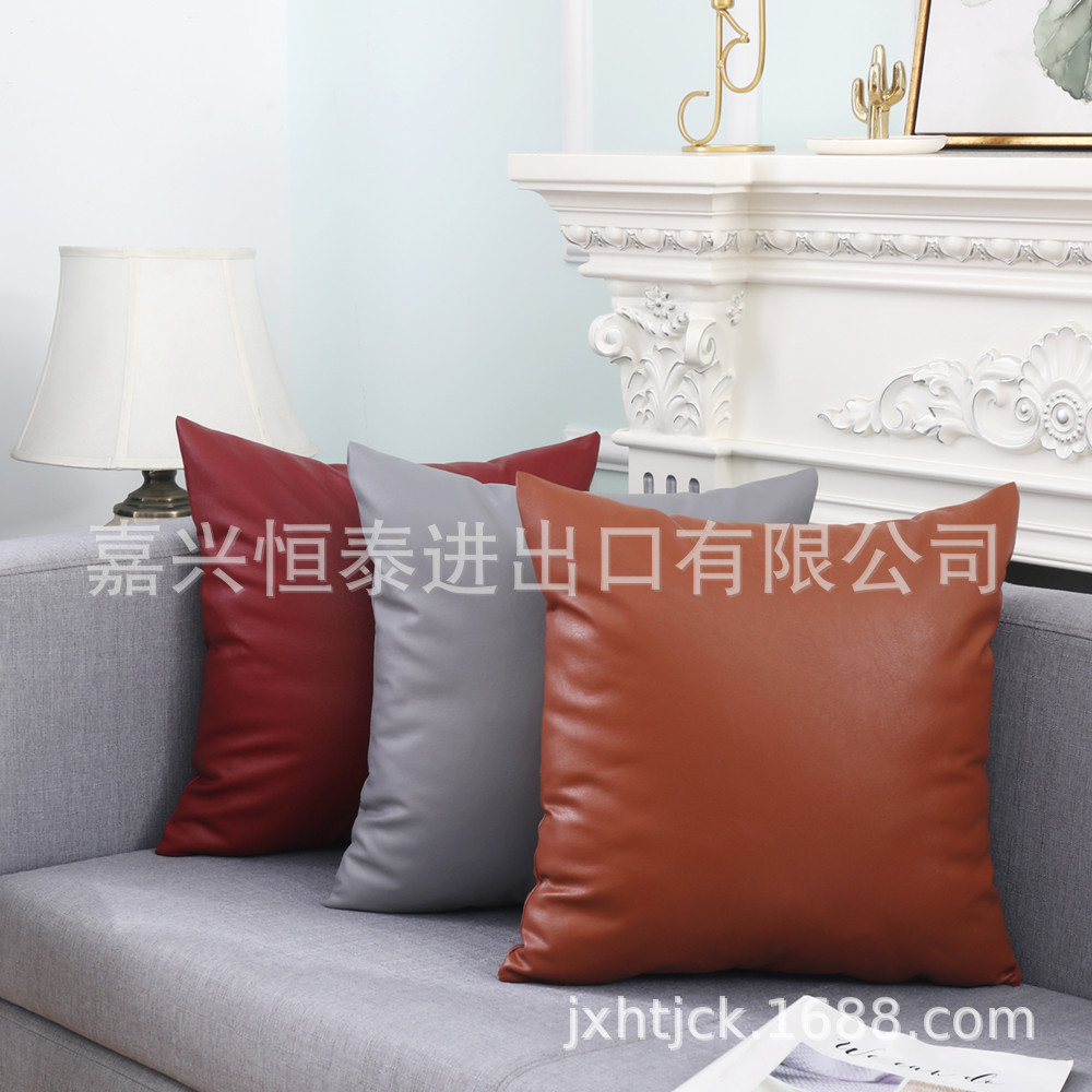 모조 가죽 아마존 크로스 보더 폭발 단색 베개 북유럽 인 사무실 자동차 봄과 여름 베개 커버 쿠션 커버