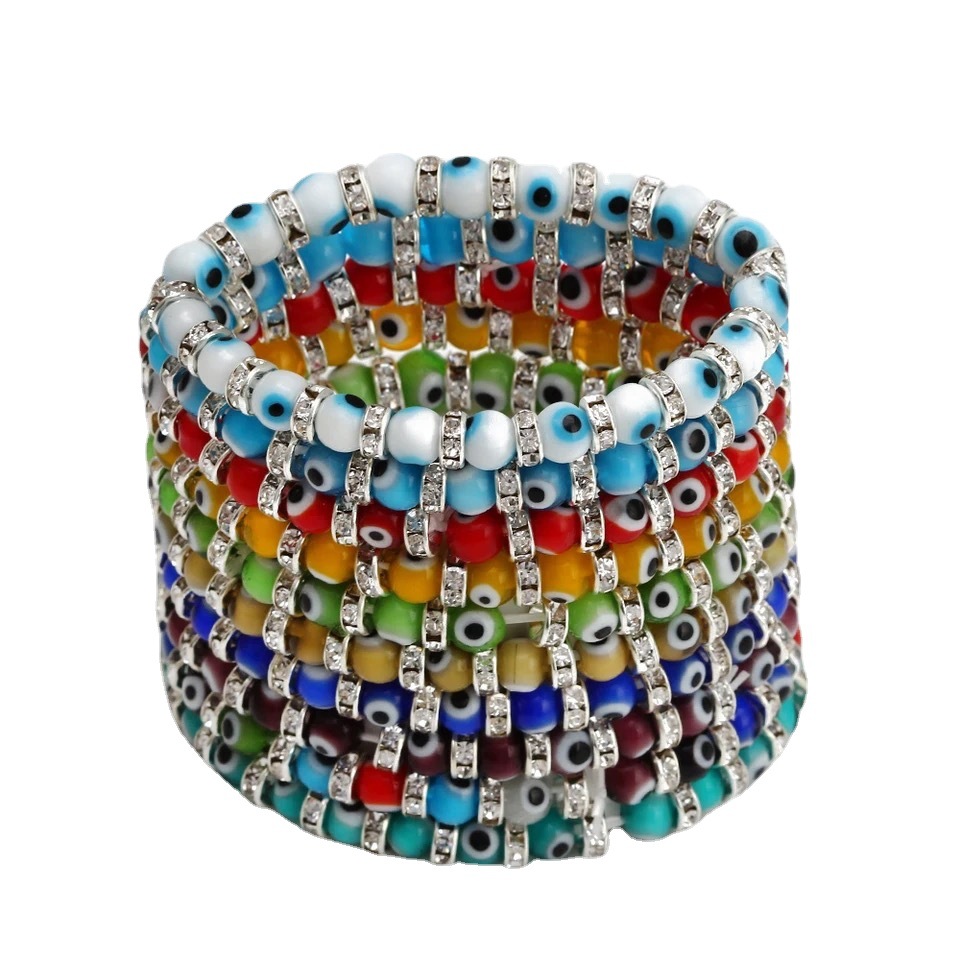 产品名称:6mm琉璃珠合金镶钻恶魔之眼串珠弹力女手链