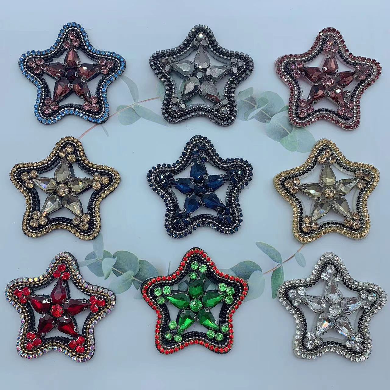 Lan Tong 재고 수제 네일 비즈 스티커 드릴 베스트 셀러 멀티 컬러 유리 5 점 별 의류 액세서리 가방 모자 장식
