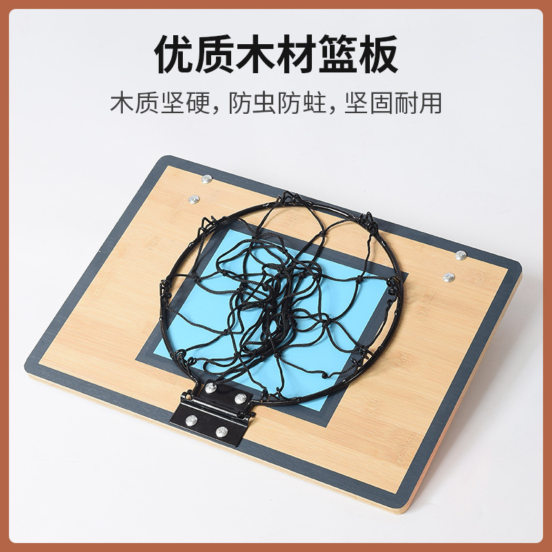 产品名称 篮板 尺寸 尺寸: 43*30.1*1.1CM ,铁圈外径约25厘米,内径约23厘米,配12公分的PVC玩具球,不适配成人篮球。 材质 竹板+铁圈 单个包装 彩盒 印刷方式 可根据客户要求做丝印,热转印,贴纸等 其他配件 金属挂扣(可挂于门框上)/气筒/球 箱规 10套/77.5*47.5*37CM 其他 我司还可提供20*16cm 23*18cm 28*21cm 29*24cm 30*22.5cm 36*26cm 40*30cm篮板