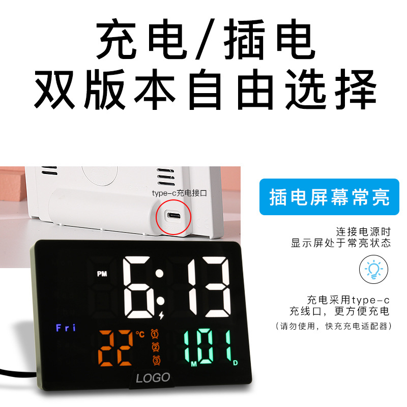 신핫 세일 LED 전자 시계 디지털 알람 시계 학생 특별 크리에이티브 대형 스크린 디스플레이 전자 시계 충전/플러그인