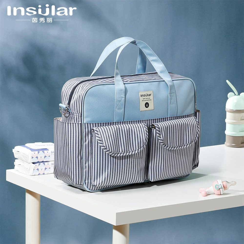 跨境防水多功能大容量斜挎单肩妈咪包时尚母婴包手提待产包货号:MA1006面料:210D五分格里料:210D涤纶尺寸:39*12.5*33cm重量:0.52kg包装尺寸:44*33*4cm装箱尺寸:68*45*68cm装箱数量:70个/箱
