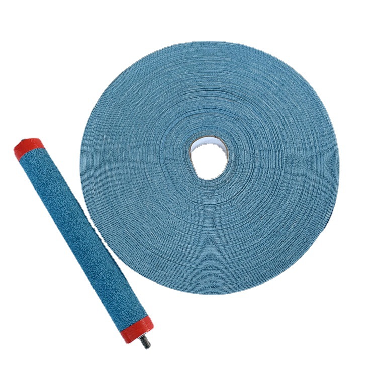 糙/粒面皮制品一般为长度100M,宽度40mm(大概6公斤多/卷),其它宽度可根据要求定做,大宽度可为1000mm。应用时,螺旋状包绕在辊筒上,用粘合剂粘牢,用卡子或螺丝固定头部。
