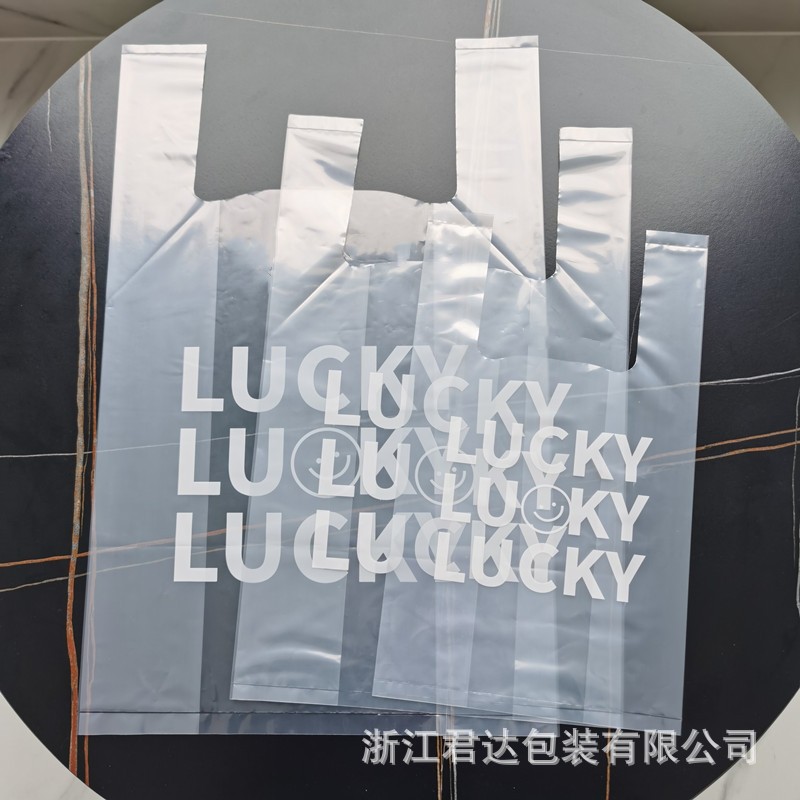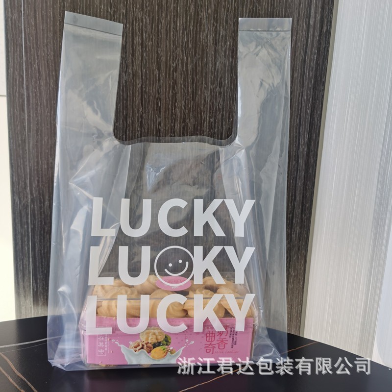 뜨거운 판매 행운의 행운 두꺼운 투명 소프트 필름 플라스틱 토트 백 타로 라운드 포장 가방 테이크 아웃 가방