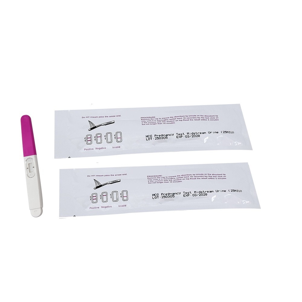 早早孕检测试条是利用胶体金标记免疫层析一步法原理,可以快速、准确、简便地检测育龄妇女尿液中HCG的含量和变化,用于确定早期妇女妊娠(妇女怀孕后3-7天),从而达到优孕或早期药物终止妊娠的目的。