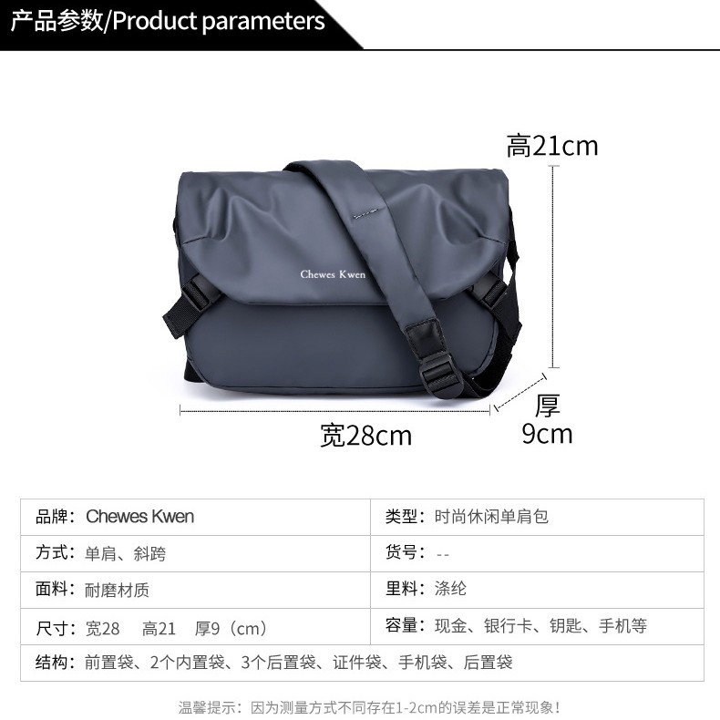 스타일 스트리트 트렌드 항목 번호. 5055 배포 임계값 가입 없음 재료 옥스포드 회전 인기 요소 20518702028 안감 질감 폴리에스터 브랜드 없음 패턴 단색 색상 다크 그레이 모델 5055 라이선스 가능한 개인 레이블 예 시즌 2022 년 여름 컴퓨터 크기 수용 9 인치 해당 시나리오 레저 여행 기능 초경량 최신 배송 시간 2 해당 성별 남성 제품 카테고리 남성용 숄더백 -