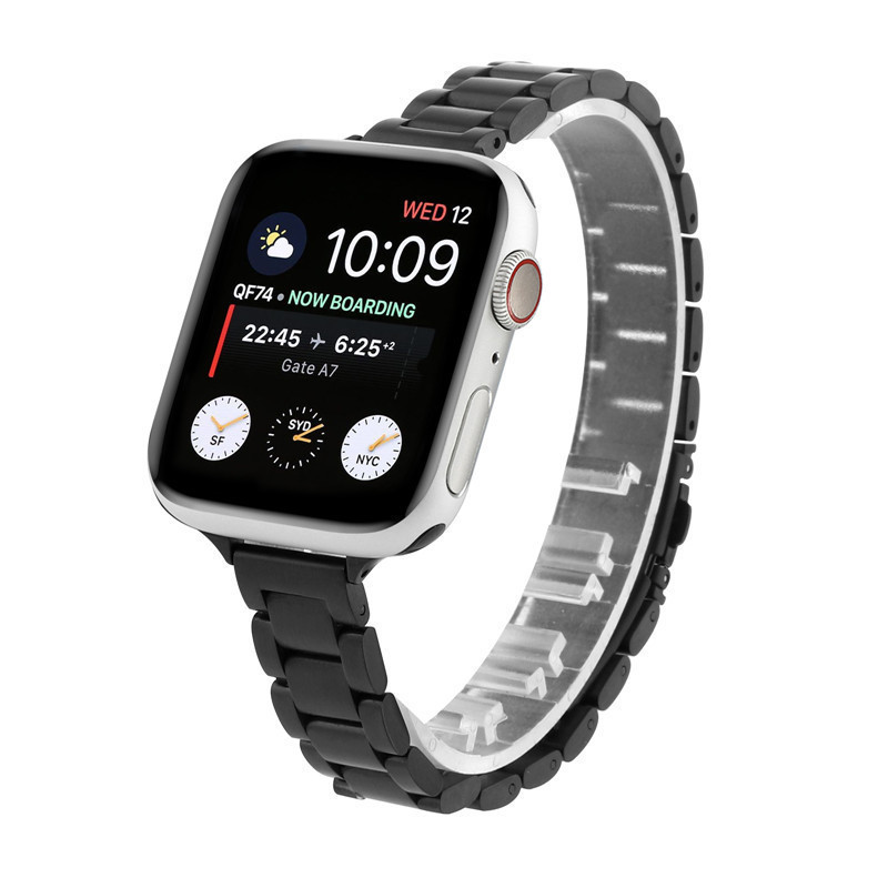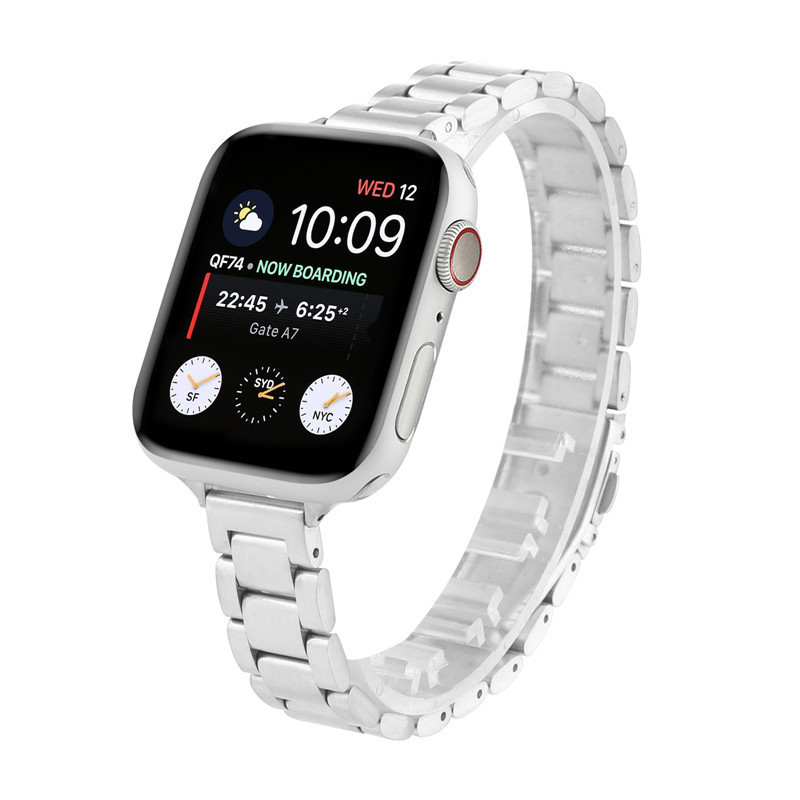 适用苹果手表 14mm三珠不锈钢表带 apple watch金属链式三株钢带