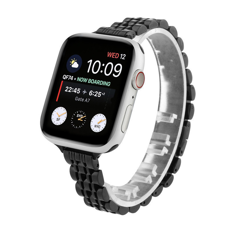 适用Apple Watch女款14mm苹果不锈钢修身小蛮腰七珠阿玛尼同款表带