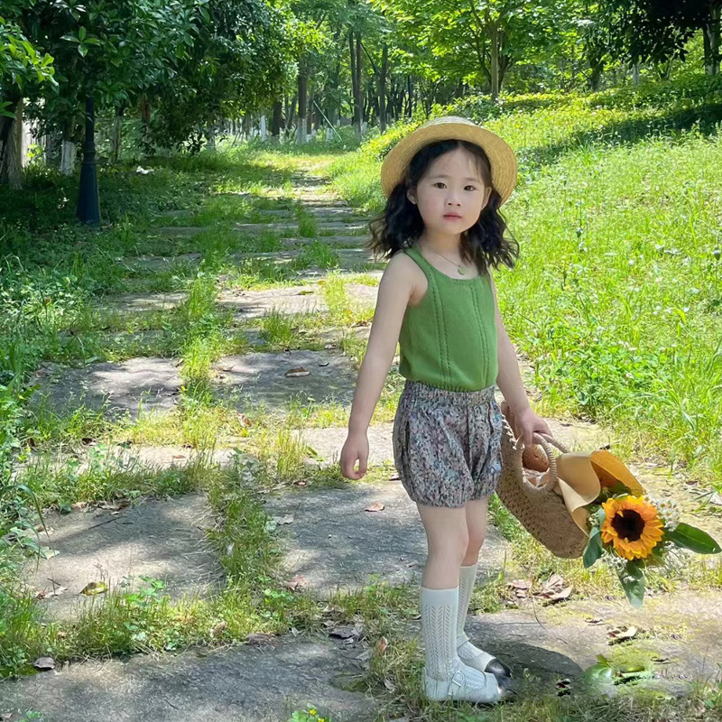 C宝同款夏季针织吊带背心女童甜美上衣misha puff无袖套头衫