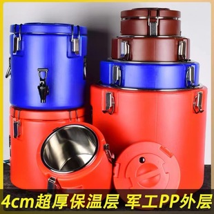 不锈钢塑料保温桶双层商用汤桶带水龙头大容量带锁上锁红色饭桶 ¥44.40 已售笔