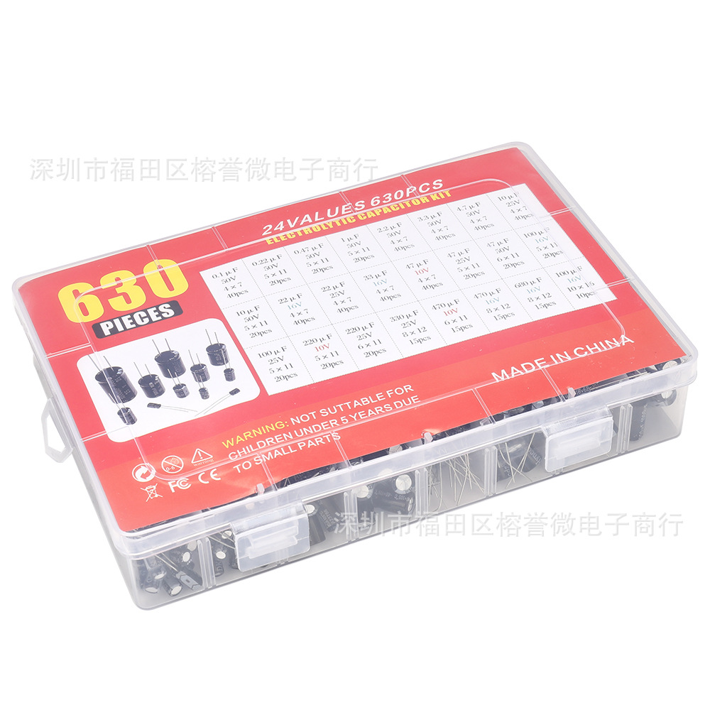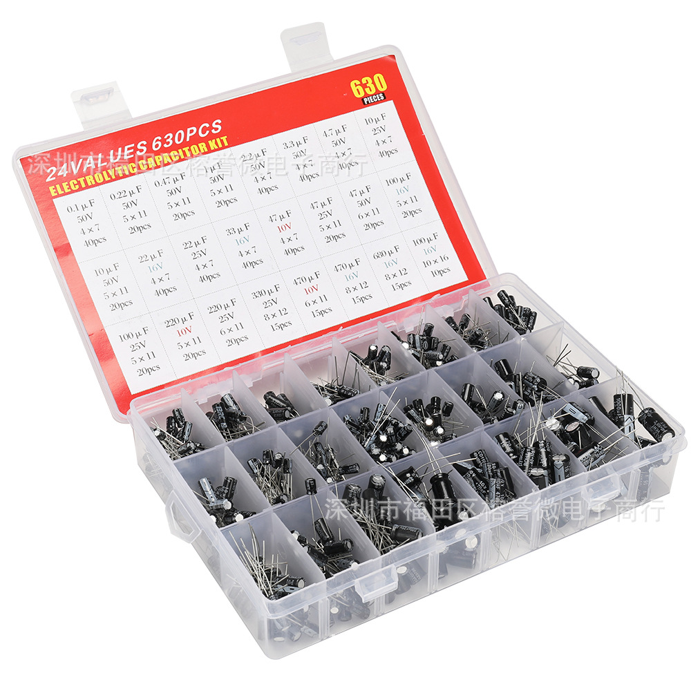 630PCS 24种电解电容套装盒装 0.1UF-1000UF电容 跨境爆款