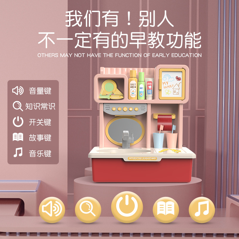 亚马逊跨境热卖亲子互动声光感应洗漱台小家电15件套装玩具