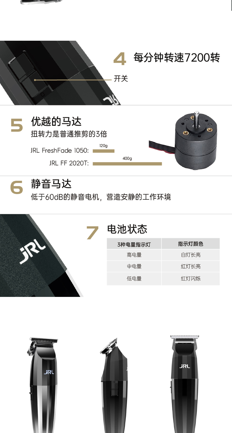 상표 다른 전원 모드 충전 전원 공급 장치 이중 목적 모델 FF2020C 크기 JRL-2020H 헤어드라이어 청소방법 세탁 불가 적용 가능한 사람들 만능인 방수인가요? 아니요 블레이드 재질 스테인레스 스틸 -