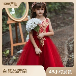 亚马逊新款儿童礼服公主裙中大童婚纱礼服女童长款网纱蓬蓬裙批发立即订购
