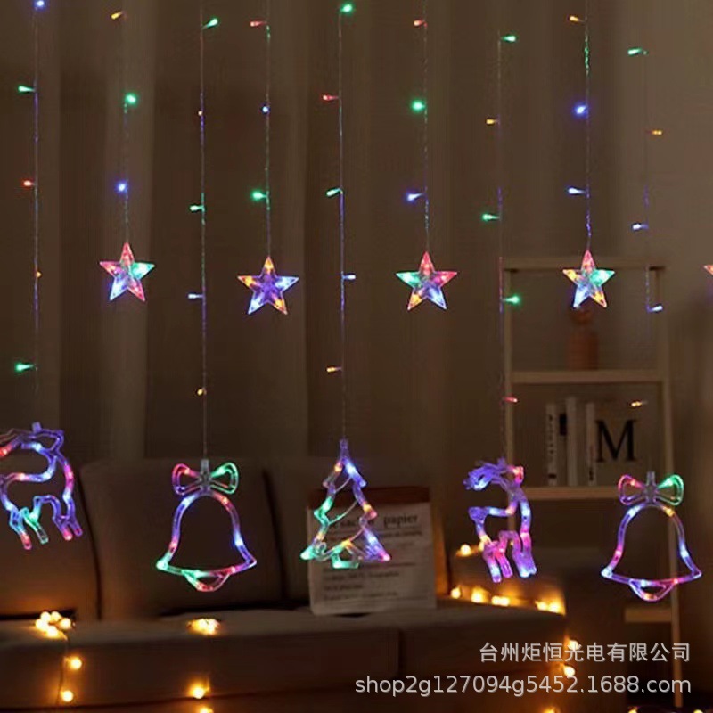 产品详情:产品宽度3.5米。另外延长线1.5米,产品下垂80cm,配件是2个铃铛、2个麋鹿、2个圣诞树。