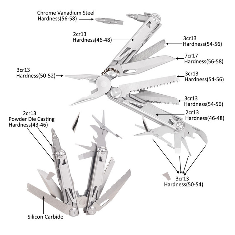 모든 국경 핫 아마존 스테인레스 스틸 접이식 도구 야외 다기능 나이프 플라이어 육군 나이프 다목적 펜치