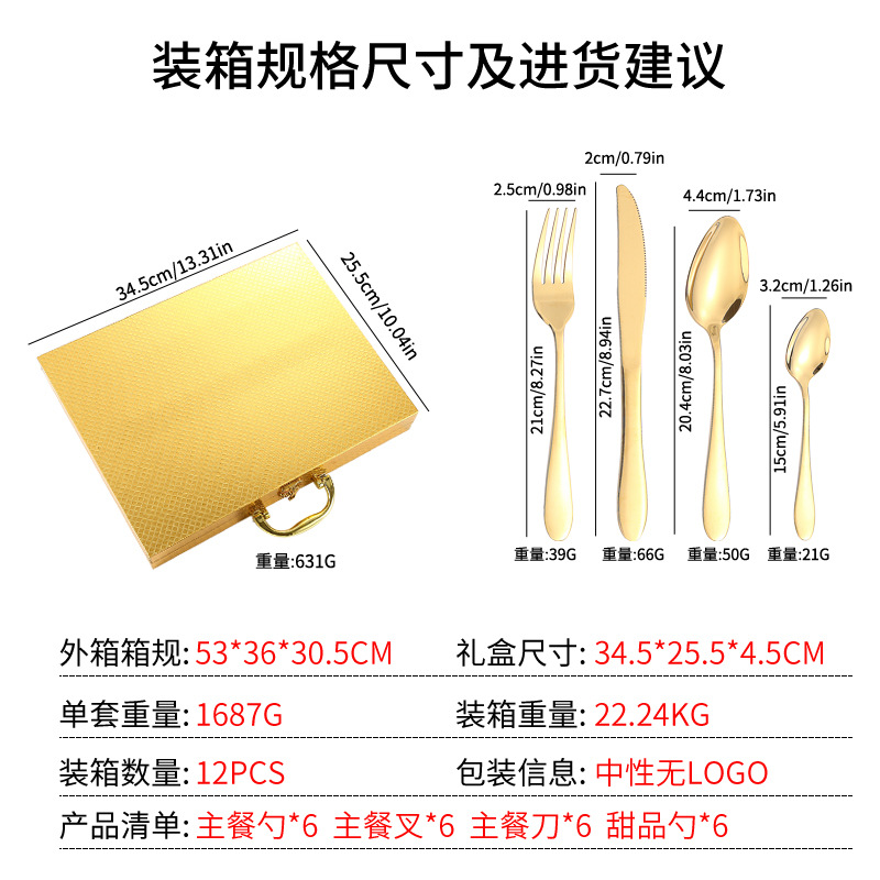 상표 타이성싱 가져오기 여부 아니요 품목 번호 1012#24개 세트 골드 박스 재료 스테인레스 스틸 연마 과정 천 광택(경면 광택) 패키지 목록 나이프, 포크, 스푼, 티스푼*6, 금상자*1 스타일 유럽과 미국 선물을 주는 행사에 적합 광고 프로모션 제품 출시 시간 2021년 여름 포장 사양 정장 가격대 40~50위안 사용자 정의 지원 여부 아니요 스테인레스 스틸 소재 410 스테인레스 스틸 특허가 있나요? 아니요 사양 블랙 골드 [48 피스 세트] 골드 박스 주요 다운스트림 플랫폼 기타 주요 판매지역 중동 제품 품질 수준 일류 제품 국경 간 수출을 위한 독점 공급원이 있습니까? 예 기능 서양식 나이프, 포크, 스푼 스타일 유형 간단한 스타일 제품 카테고리 나이프, 포크, 숟가락, 젓가락 세트 -