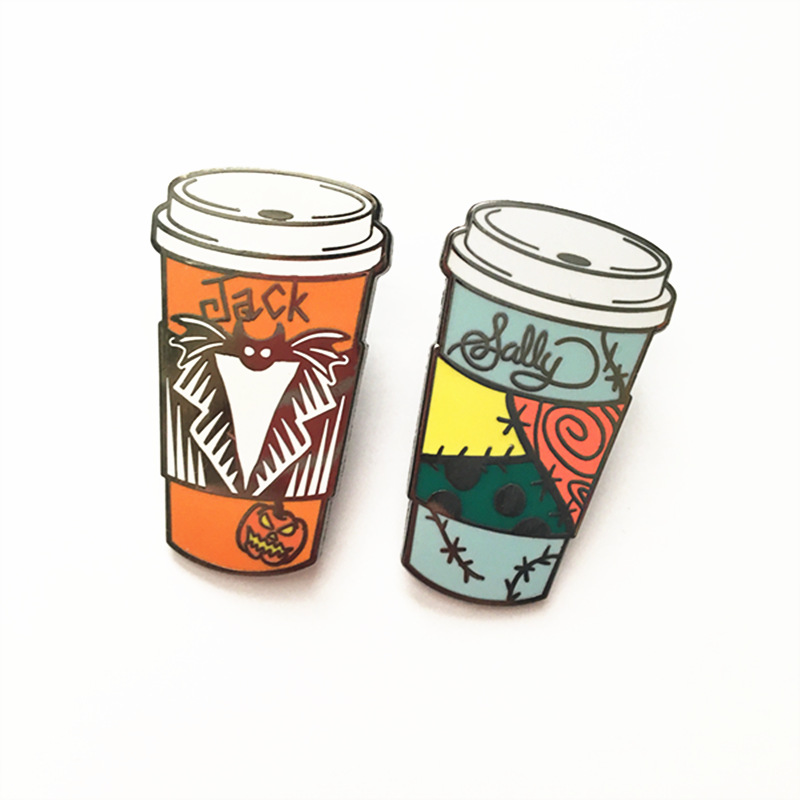 外贸热销饰品字母饮料合金胸针牛奶杯咖啡杯造型珐琅烤漆金属徽章