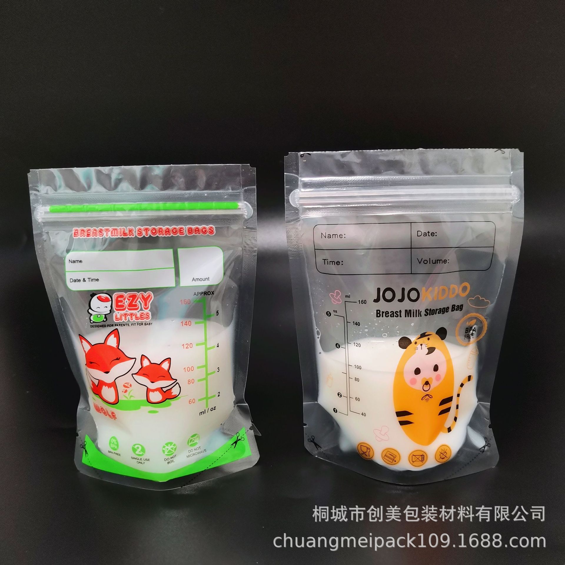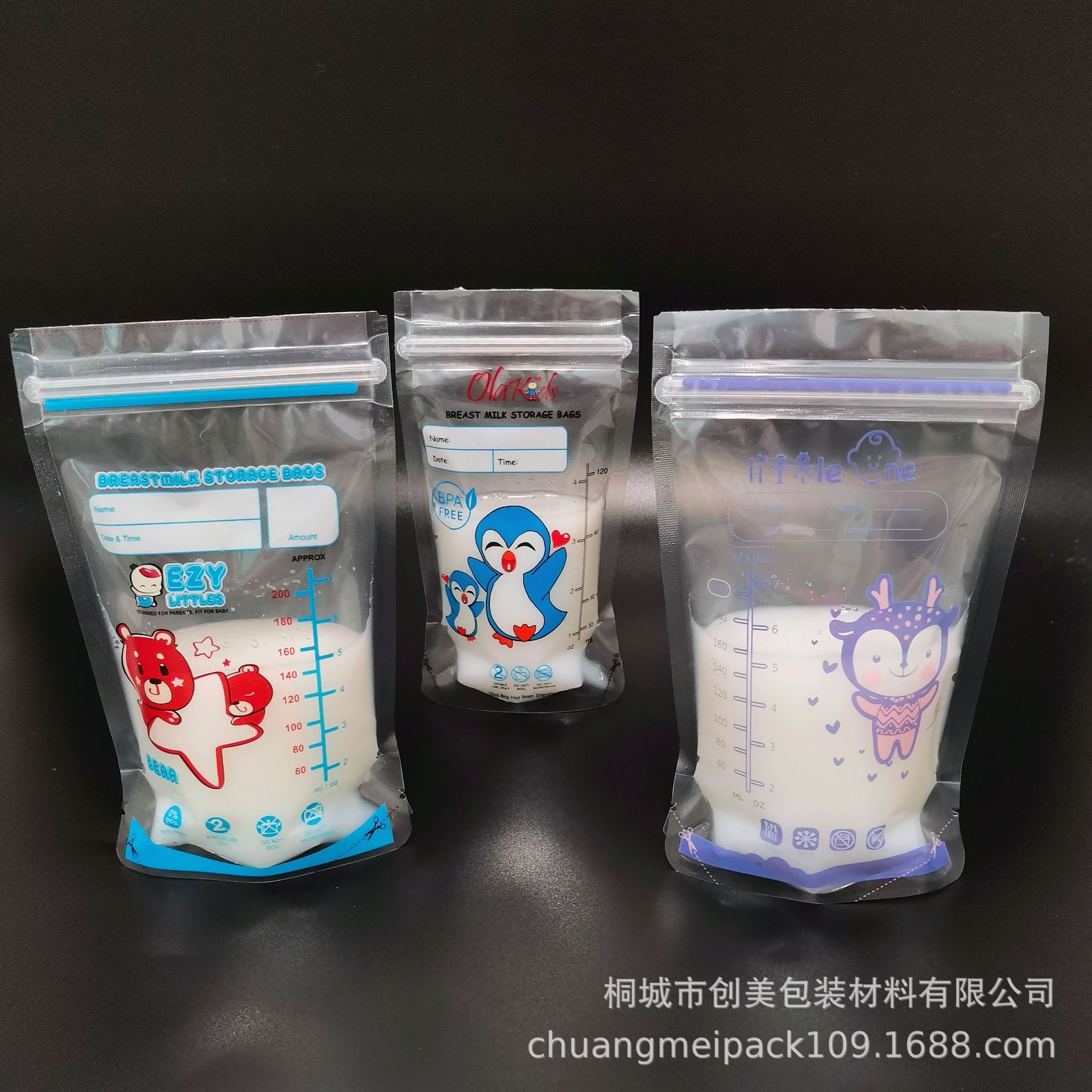 국경 간 뜨거운 판매 수출 말레이시아 4oz5oz7oz 우유 저장 가방 식품 등급 만화 동물 모유 보존 가방