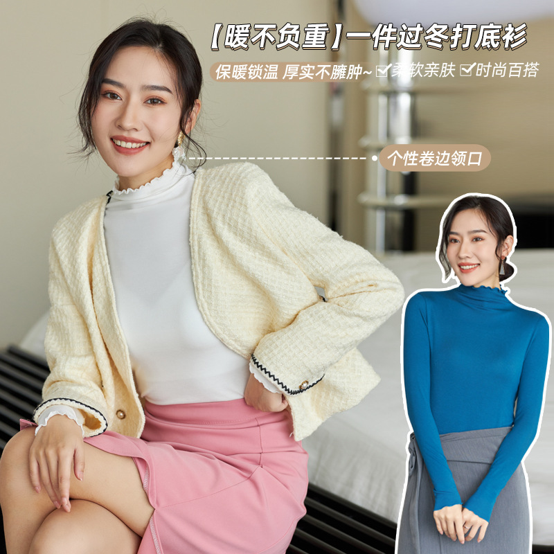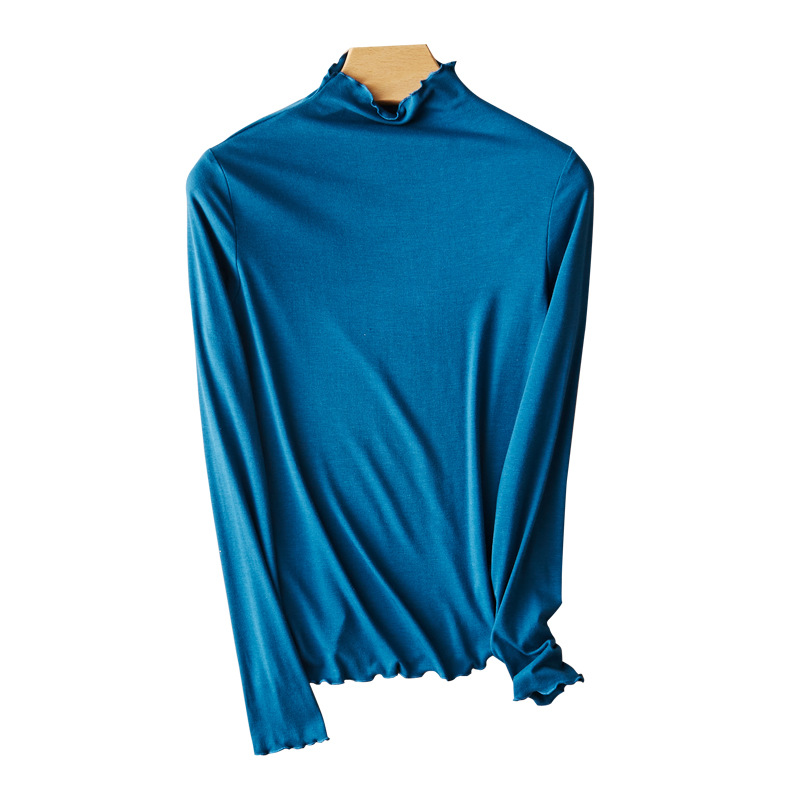 TikTok 폭발 우드 이어 베이스 셔츠 여성용 가을 새로운 긴팔 탑웨어 올매치 티셔츠 슬림핏 슬림 내부 및 외부