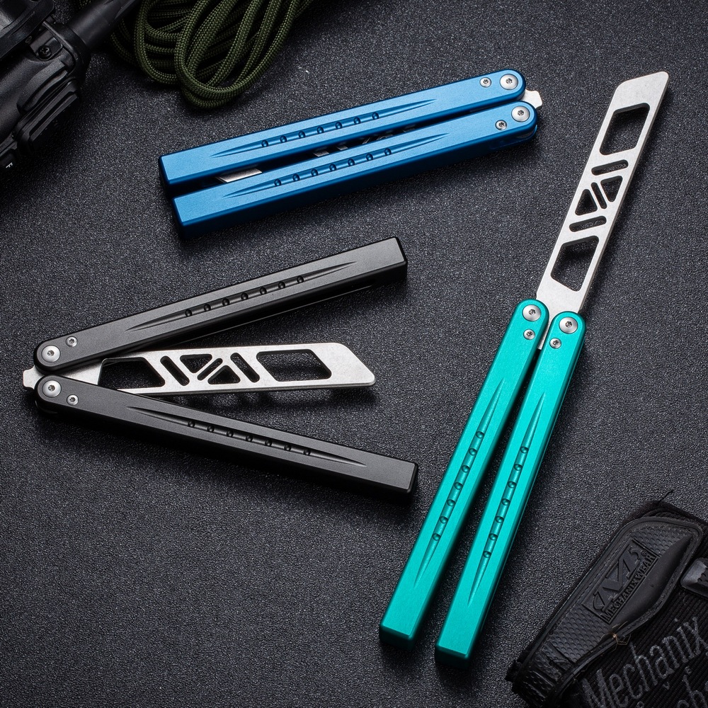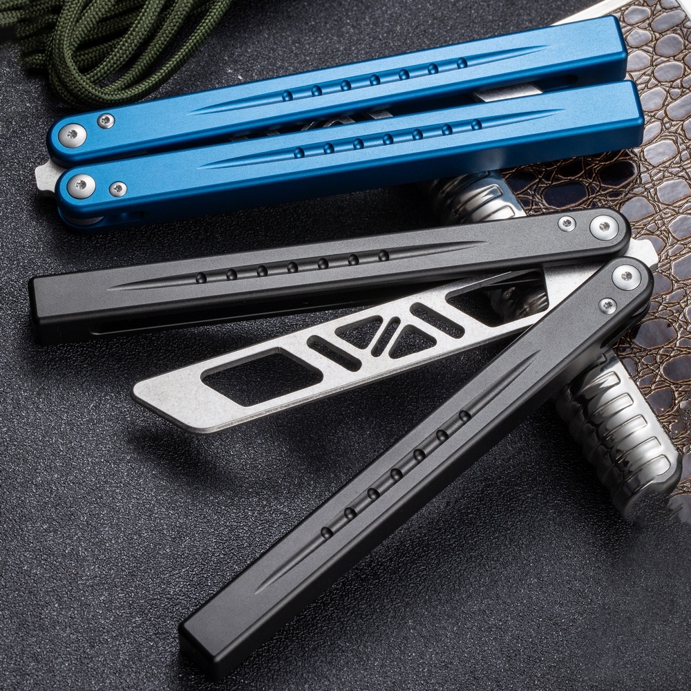 뜨거운 판매 나이프 CNC 알루미늄 핸들 T6061 통합 핸들 나비 훈련 칼 재고 도매 나비 연습 칼 공장 직접 판매