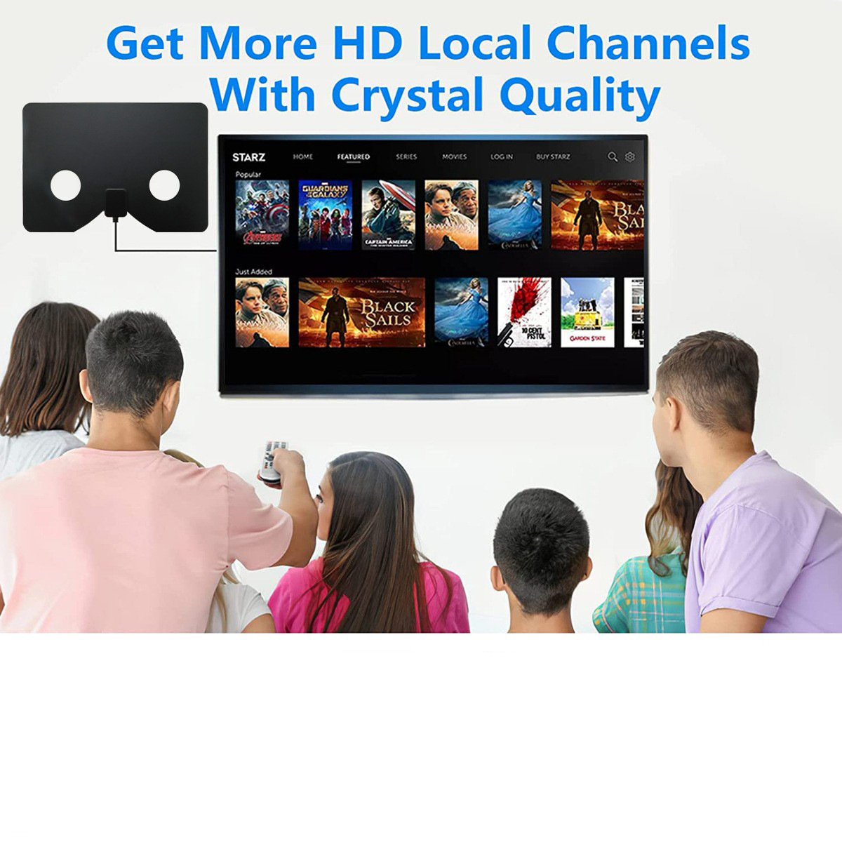 HDTV室内电视天线,外观设计美观大方,轻薄,体积小等特点,背部采用粘贴式可撕胶,便于安装,配套F转IEC转换插件,欧美/日本使用都可方便相互转换