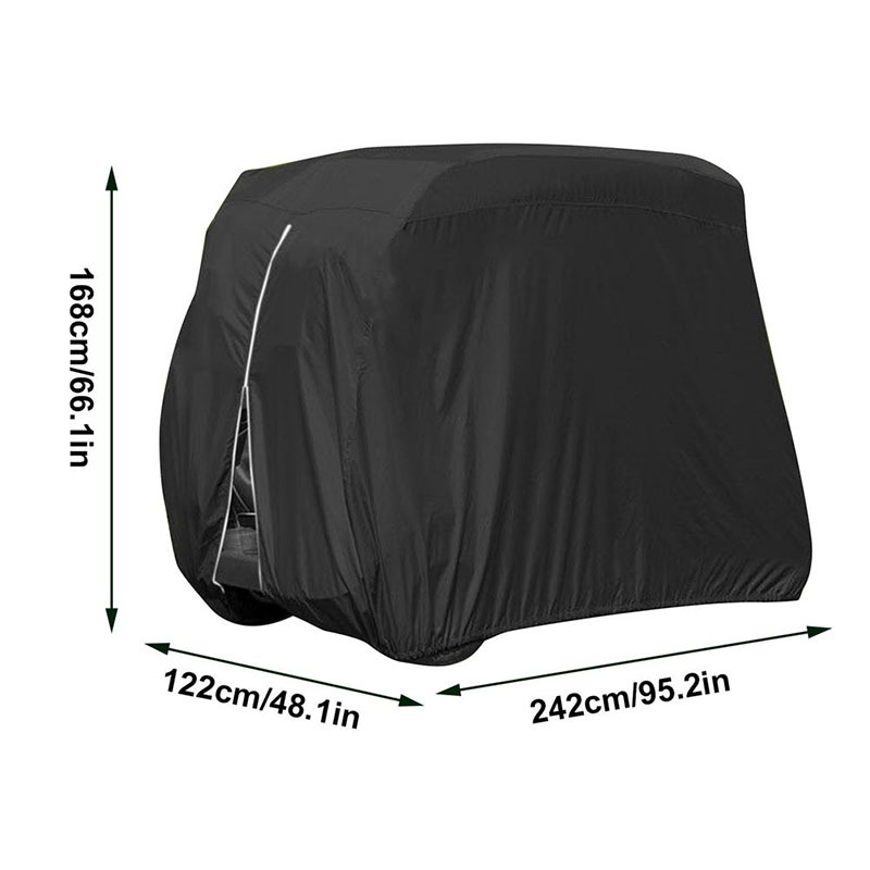产品特点:210D牛津布涂银涂层防水材料,高密度材质。可以保护车身内外,防止雨、雪、阳光、灰尘、鸟粪便、树叶对高尔夫车的伤害。