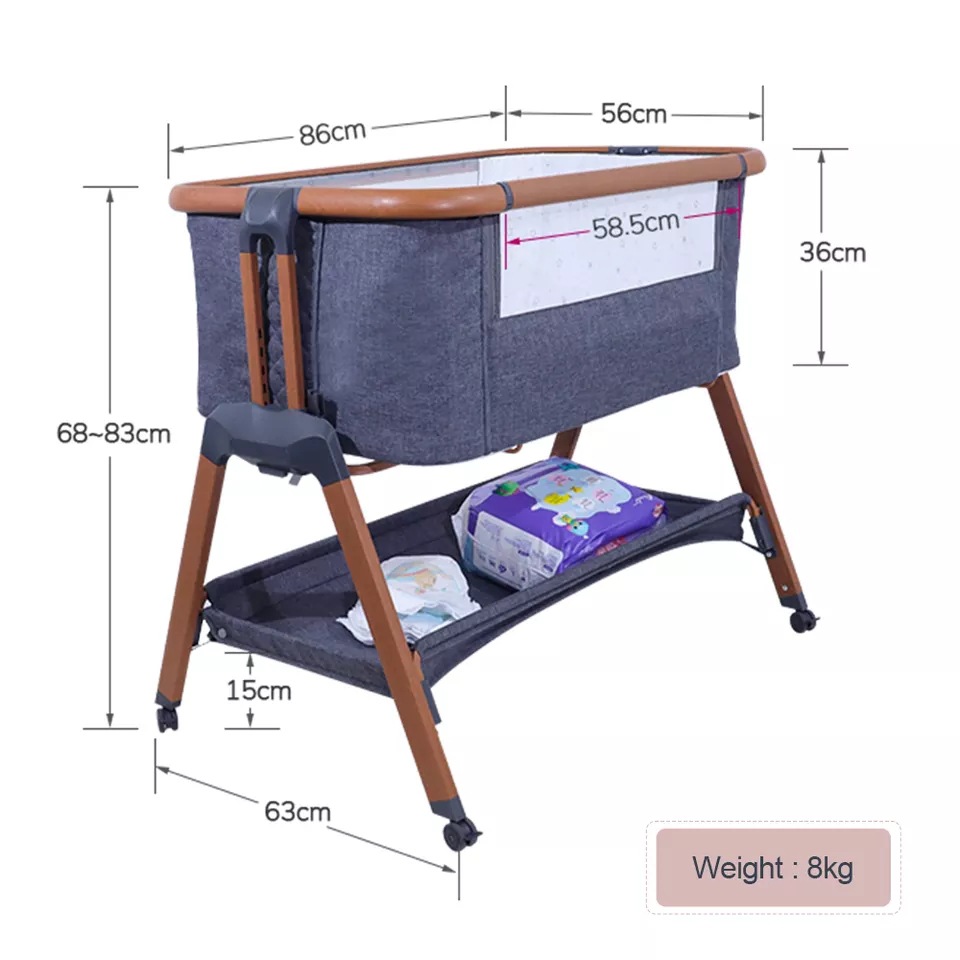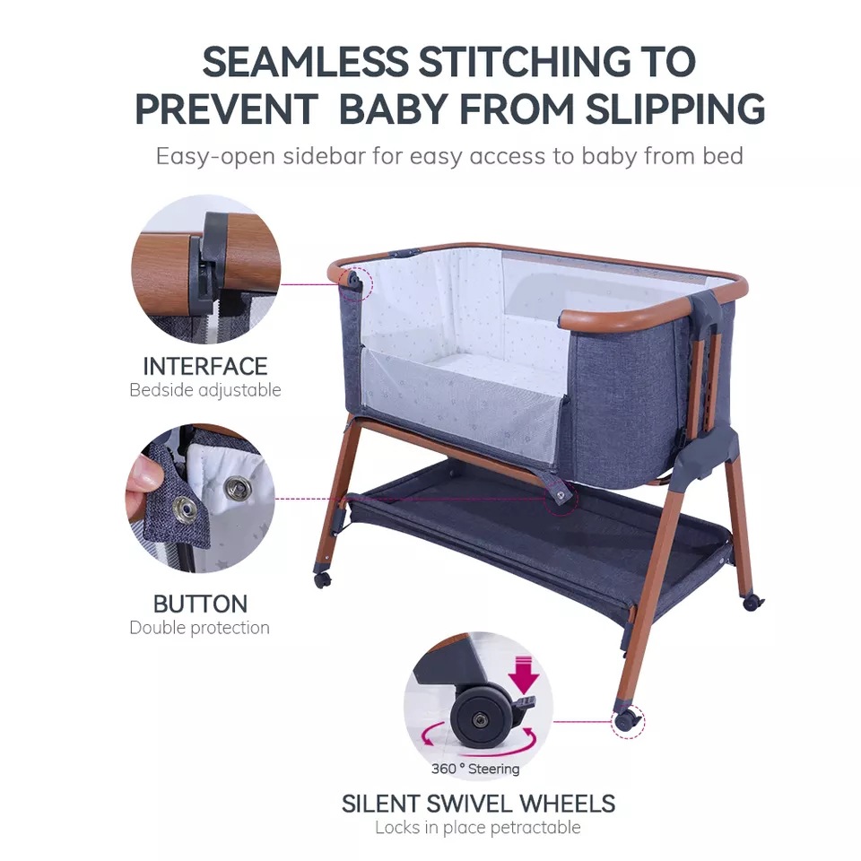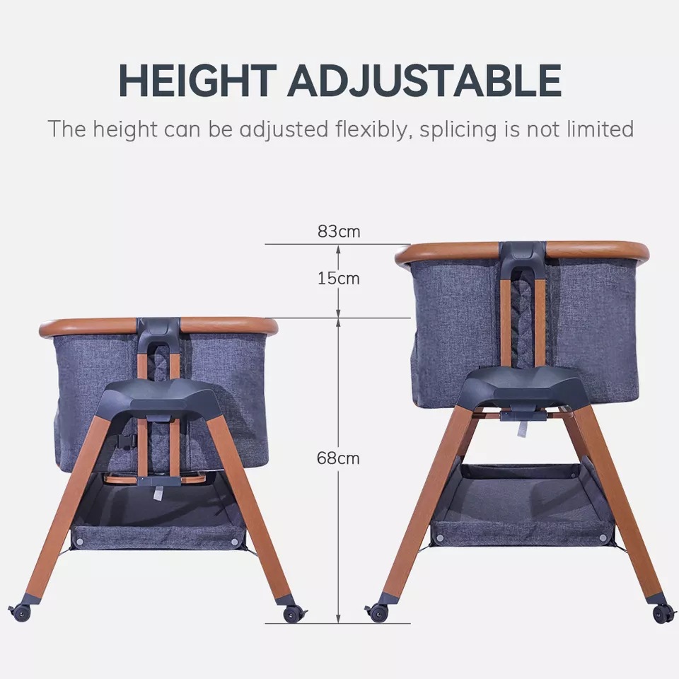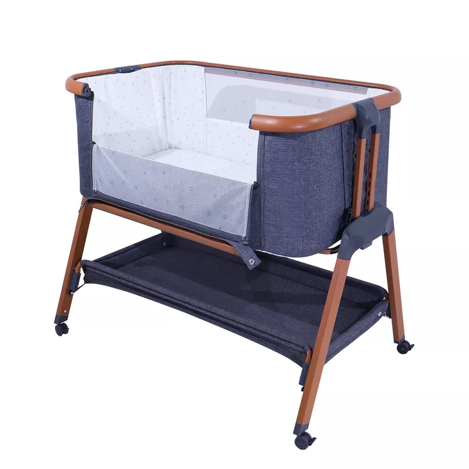 국경 간 뜨거운 판매 아기 침대 가변 기저귀 테이블 바퀴 6 기어 높이 조정 안정적인 편안한 침대 옆 침대